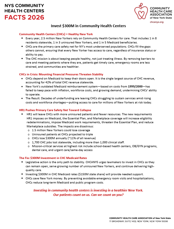 Join us for CHCANYS 2026 Advocacy Day and champion community health center and patient priorities in the 2026 New York State budget!